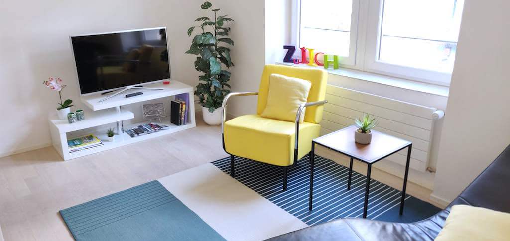 Die Möblierung ist immer abhängig von der Grösse und dem Layout des Zimmers. Die Möbel sind modern, hell und schlicht in der Farbwahl. Akzente setzen wir mit farbigen Assessoires oder Bildern. Wir haben einen konsistenten Stil und höchste Ansprüche an die Qualität der Möbel.